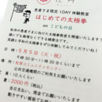 患者さま限定1DAY体験教室「はじめての太極拳 on こどもの日…