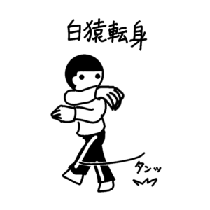 伝統華佗五禽戯13式の猿戯2式目「白猿転身」をやってるところ。