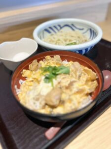 赤池プライムツリーで映画を観た後は、フードコートで「うまげな」さんの親子丼と温玉ぶっかけ。